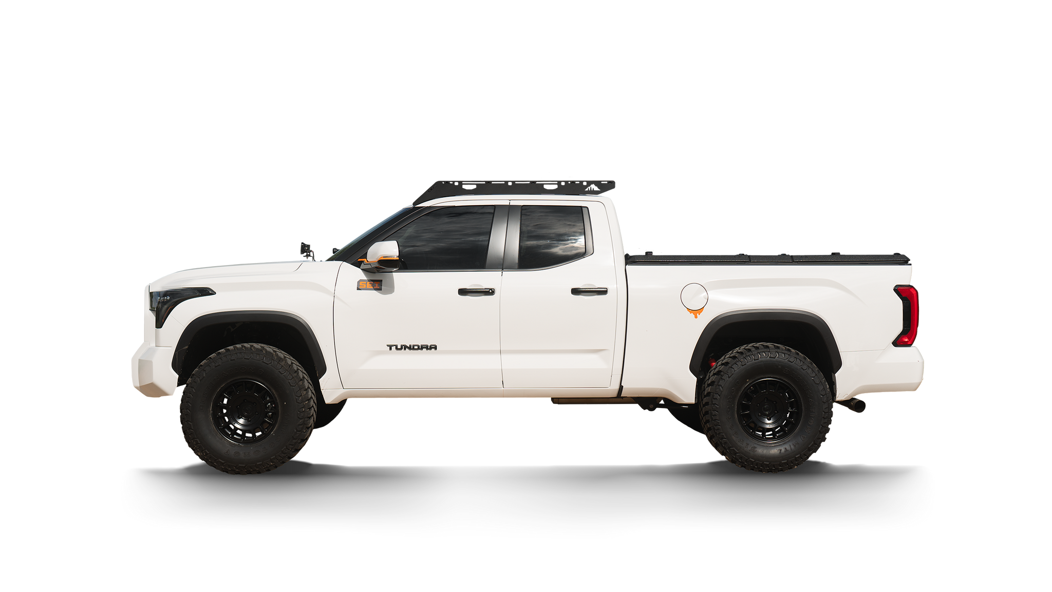 This full-length aluminum roof rack, for the 2022-2025 Toyota Tundra, expands on our lineup of tried and true rack systems. Our racks are some of the toughest on the market and are designed to get your gear to the places that matter the most. Explore more and worry less with our industry-leading ¼” thick aircraft-grade aluminum side panels and stainless steel hardware.  Secure your gear by bolting into one of the extrusion crossbars or by strapping it directly to the side plates.