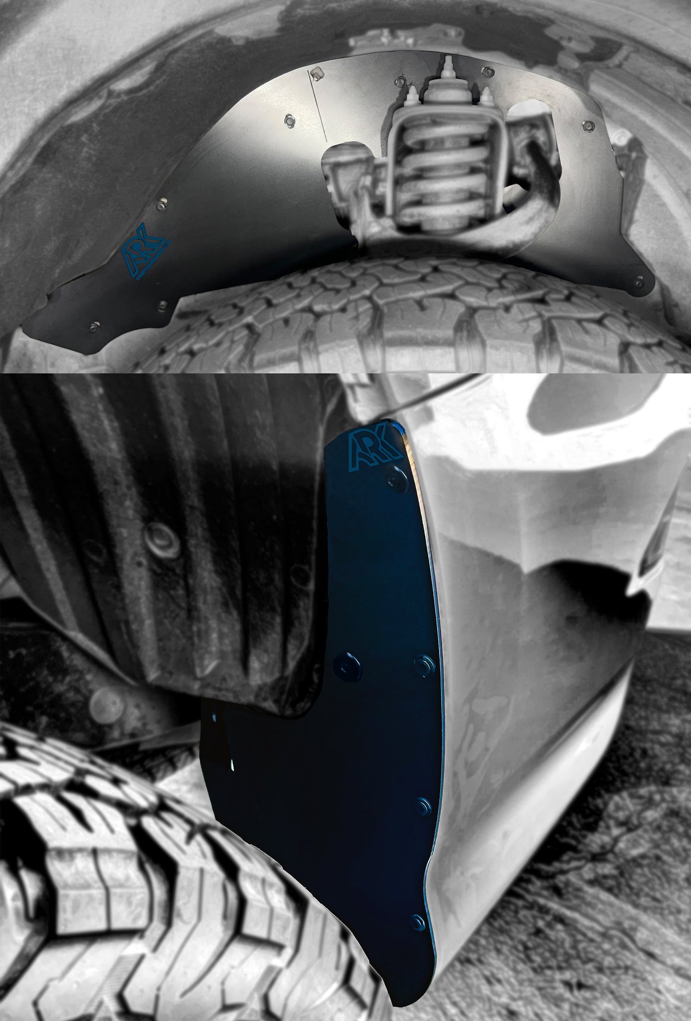 • Ark Splash Guards are meticulously designed to complement the Lexus GX 460's luxury and rugged capabilities. Our guards fit seamlessly, covering gaps between the fenders and tires to maintain a sleek, polished look. Whether your GX 460 is stock or has a suspension lift, our guards provide the necessary protection for your vehicle's undercarriage, shielding the engine bay from harsh off-road elements. The innovative Micro Deletes feature enhances protection by reducing debris and mud spray, keeping your vehicle cleaner for longer.