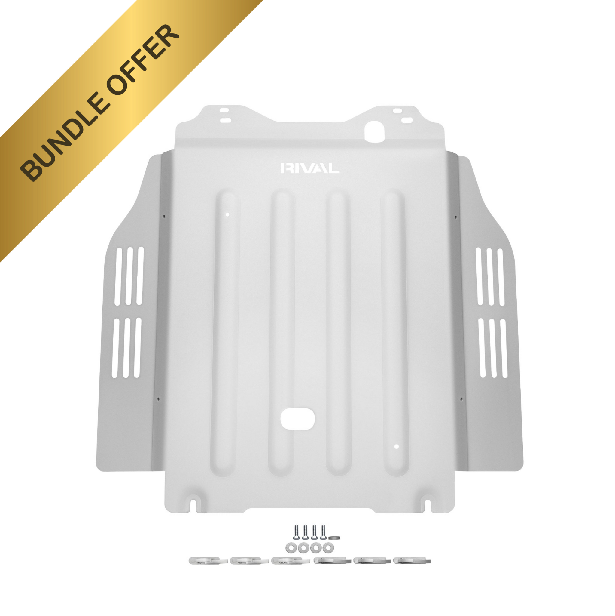 The high-quality laser cut RIVAL skid plates are made from deep stamped 1/4-inch thick aluminum alloy. This durable underbody armor offers both a lightweight and high strength solution for underbody protection. Combined with a no drill installation, it’s an easy choice to protect underbody of your vehicle from rocks, logs and scrapes. Being an extremely corrosion resistant material aluminum will not rust even if the surface coating becomes gouged or scratched.